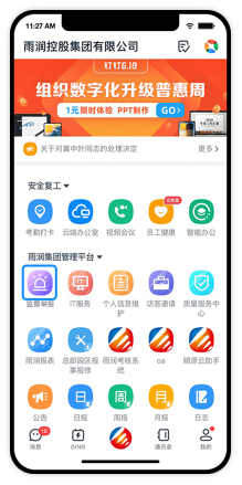 打開(kāi)釘釘APP,點(diǎn)擊底部工作臺,選擇監察舉報小程序